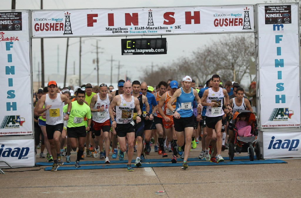 Thursday night I started packing everything for my trip to Texas for The Gusher Marathon.  Obviously, it takes some preparation for any race when you are traveling to the site.  I tried to make sure I had everything and was fully prepared.  I charged my Garmin and decided since it was just a weekend trip there was no need to bring the charger.  Mistake number one, on Friday when I opened my bag to get my stuff for an easy run to shake out the legs I discovered that my watch was on in my bag and it was down to two bars.  Can you say slight panic.  I went to several stores in Port Arthur and of course could not find a replacement.  So I figured I would just go with it and hope the battery would last through the race.  Another thing I prepared for was the warm weather.  I figured I would need more electrolyte pills with the heat, so I packaged them in small Ziploc bag that I could easily carry.  Mistake number two, leaving the bag on the counter in my bathroom in Huntsville.  I did not discover this until 8pm Friday night.  I saw a booth at the expo earlier that day that had some but of course they were not there the morning of the race.  So as a back up I took a small baggy of salt with me.  So much for preparation.